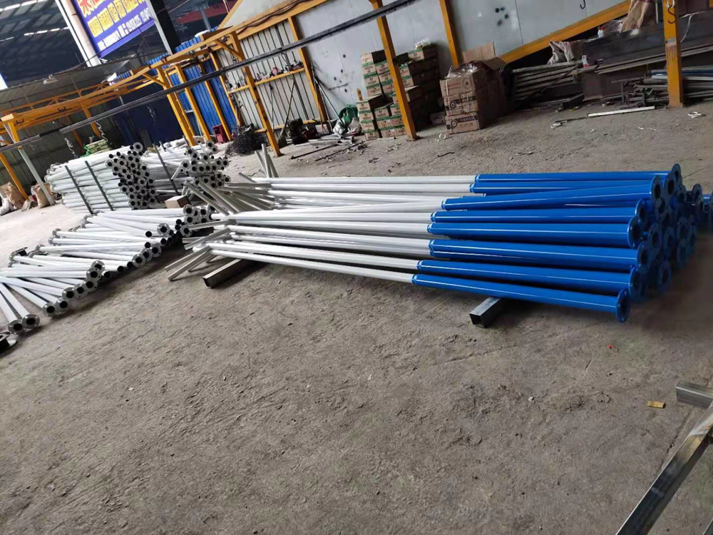 5、灯杆热镀锌后进行静电喷塑(颜色可选择),喷塑前先磨砂以增加附着力,喷塑过程中严格控制固化时间和温度,保证塑层均匀、光滑、无气孔。喷塑层厚度≥10oum,附着力达到GB9286-880级,表面光滑,硬度≥2h。